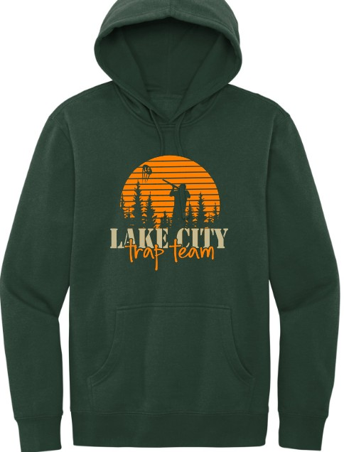 Lake City Trap Hooded Sweatshirt by District with front full-color custom printed design (D2 – Design 2).