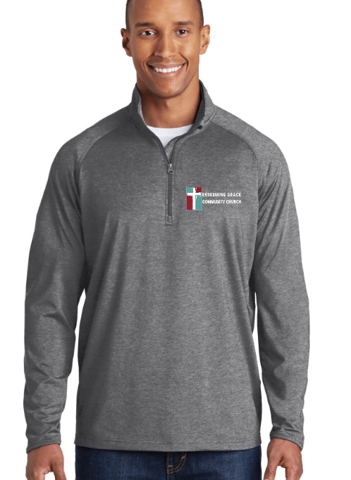 Adult 1/4 Zip with Redeeming Grace Left Chest embroidery.