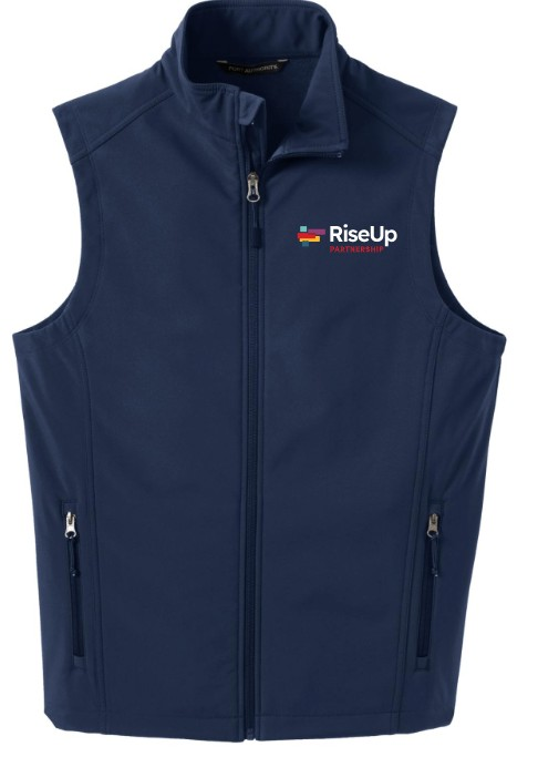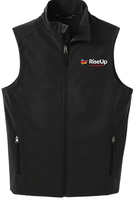 RiseUp Partnership Adult Soft Shell Vest with left chest embroidery.